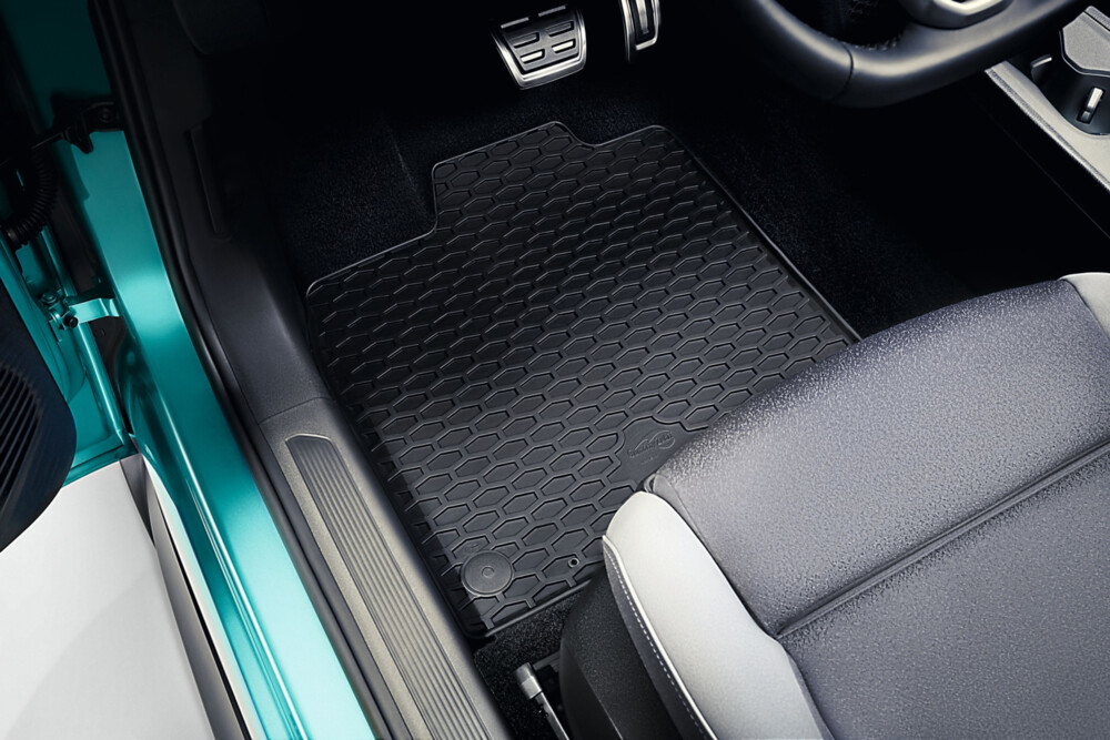 Las alfombrillas de goma PLUS de Volkswagen Accesorios se distinguen por su precisión de ajuste, su resistencia a climas extremos, sus propiedades antideslizantes, su fácil limpieza y la compatibilidad con el sistema de sujeción presente de serie