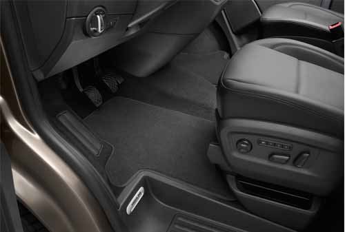 Alfombrillas textiles delanteras premium a medida, realizadas en terciopelo tejido, tupido y resistente al uso. Las alfombrillas se sujetan de modo que no se deslizan. Para modelos Multivan, Caravelle, California, Transporter.