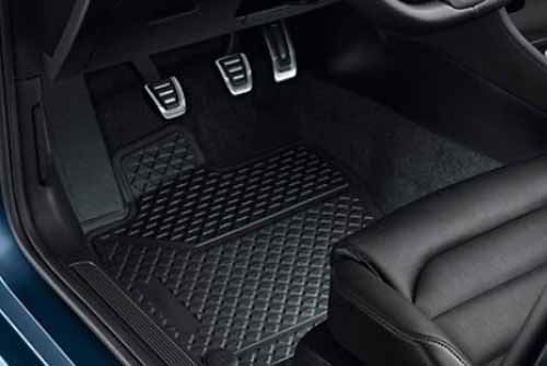 Las alfombrillas universales están hechas exactamente a la medida de los contornos del interior del vehículo. Son muy resistentes, de larga vida útil y presentan una cara inferior antideslizante. Recogen la suciedad y la humedad, que a continuación se pueden eliminar con un sencillo lavado. Un especial toque visual viene dado por la inscripción del vehículo integrada en la parte delantera. El material carece de olor y no genera emisiones.