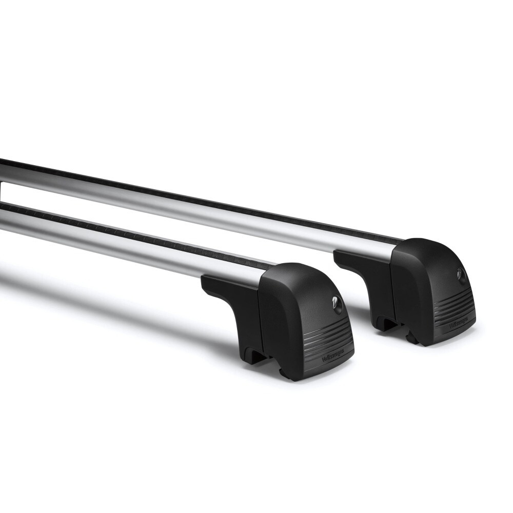Barras de perfil de aluminio de forma aerodinámica al que pueden fijarse p. ej. portatablas de surf, portabicicletas, portaesquís y snowboard o los prácticos baúles de techo.
