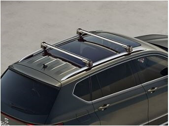 Las barras portaequipajes SEAT Originales son ideales para todas las carrocerías. Las barras portaequipajes han superado alto standares de calidad y presentan un perfil de aluminio de forma aerodinámica al que pueden fijarse p. ej. portatablas de surf, portabicicletas, portaesquís y snowboard o los prácticos baúles portaequipajes. Las barras portaequipajes están completamente premontadas, y pueden montarse fácilmente y sin problemas en las barras del techo de su SEAT. Las barras portaequipajes están protegidas contra robos. El perfil aerodinámico de fácil montaje con superficie estructurada minimiza el ruido del viento. personalizadas y exclusivas para modelo Tarraco.