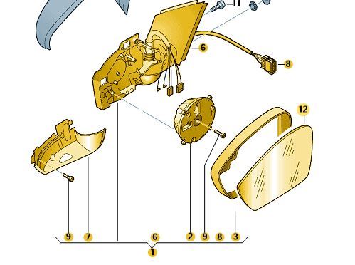 Caja de espejo exterior derecho, para vehículos con espejo retrovisor regulable eléctricamente y calefactable, diseño negro satinado.