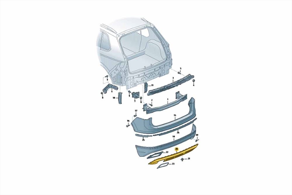 Difusor trasero original Volkswagen, con sistema de escape en lado izquierdo.