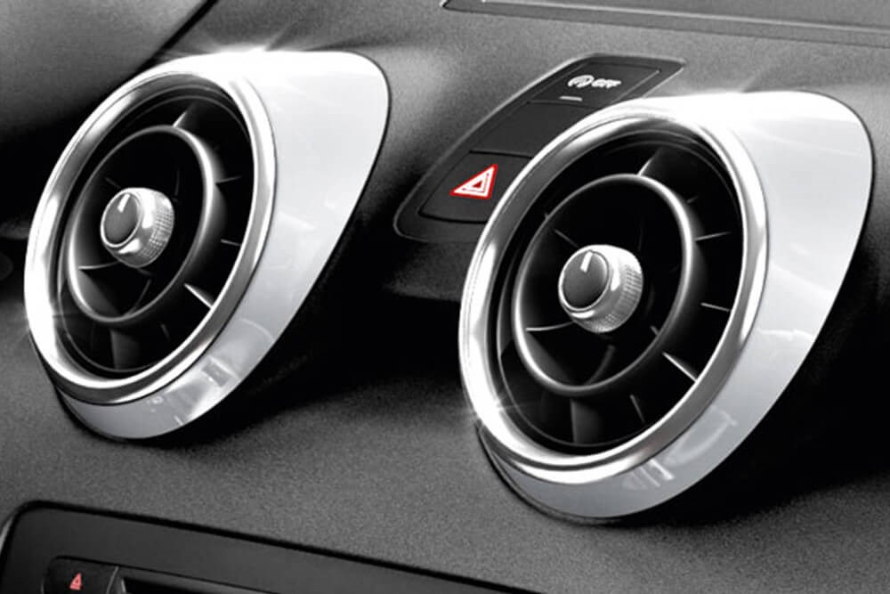 Los embellecedores en color para los difusores de aire imprimen a su A1 un toque totalmente personal. Las molduras en blanco glaciar combinan muy bien con los embellecedores del mismo color de los asideros de puerta, el retrovisor interior y la consola central.