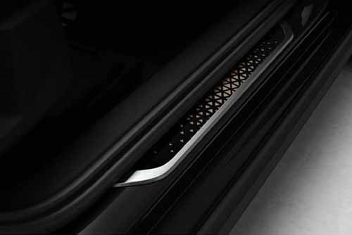 Set de dos estriberas realizadas en acero inoxidable que van colocadas encima del flanco de las puertas delanteras mediante cinta adhesiva. La parte superior es de ABS. Personalizadas con diseño “Sophisticated”. Accesorio original SEAT.