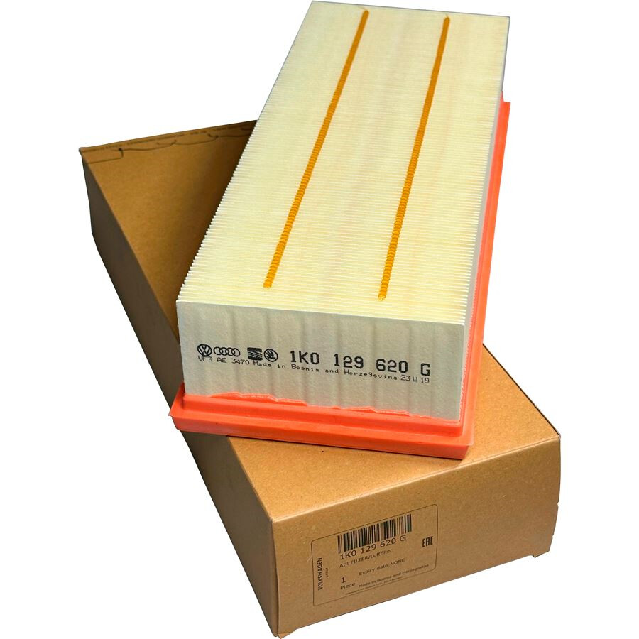 Filtro de aire original Volkswagen 1K0129620G. Compatible con Golf V/VI, Touran, León, Audi A3 y más. Repuesto OEM del Grupo VAG para una filtración eficiente y ajuste perfecto.