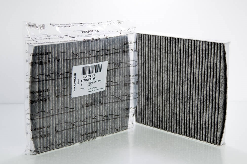 Reduce la entrada de polen y polvo fino en el habitáculo del vehículo. Evita problemas en el funcionamiento del aire acondicionado, reduce olores y absorbe los contaminantes gaseosos. Recambio original Volkswagen, Audi, Seat y Skoda.