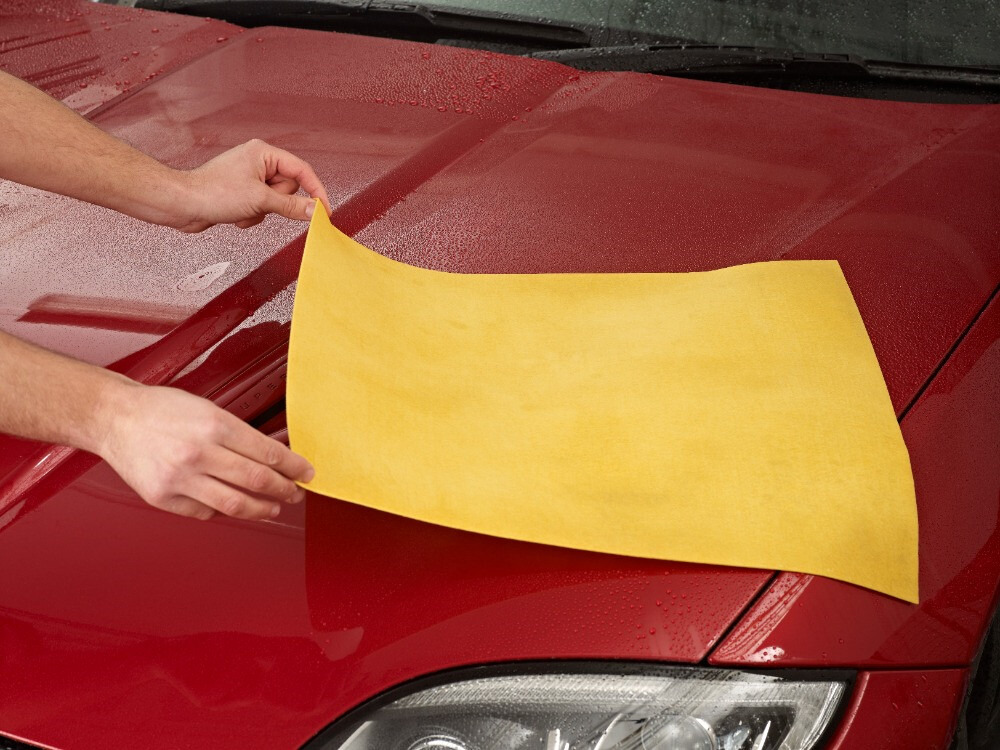 Es indispensable para secar el coche después del lavado, evitando la formación de manchas y marcas de agua en la carrocería.