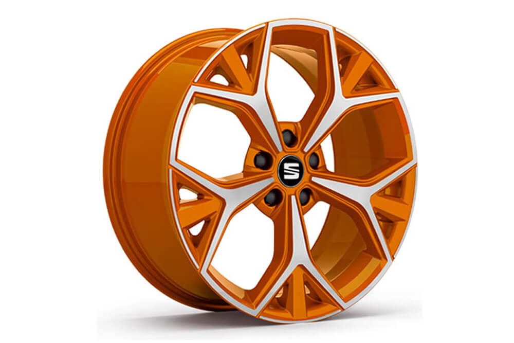 Llanta de aleación de 19”. Medidas: 8J x 19”, ET45, 5 x 112mm. Color: Diamantada Samoa Orange. Se recomienda montar con neumáticos con cordón de protección de llanta (FSL). Accesorio original SEAT.