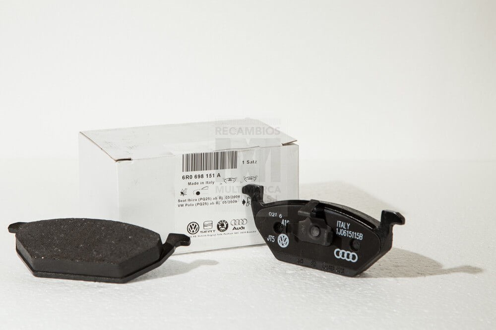 Las pastillas de freno transmiten el par de frenado al disco de freno y desde allí, a través de la llanta y los neumáticos, a la calzada. Recambio original Volkswagen, Audi, Seat y Skoda.