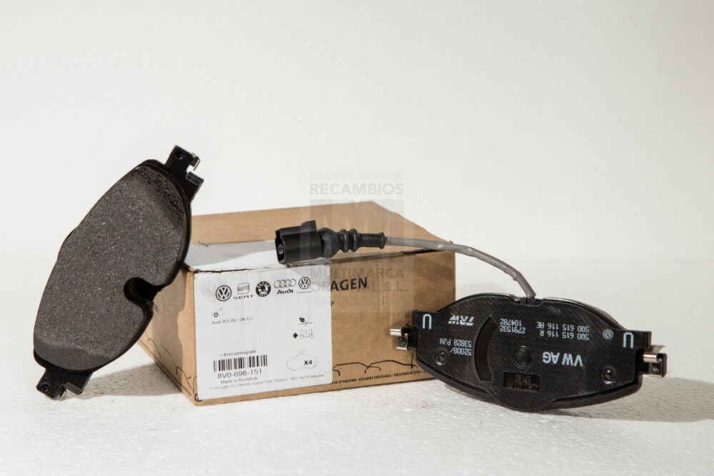 Las pastillas de freno transmiten el par de frenado al disco de freno y desde allí, a través de la llanta y los neumáticos, a la calzada. Recambio original Volkswagen, Audi, Seat y Skoda.