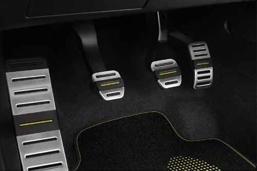 Reposapiés que combina acero inoxidable con goma antideslizante. Incluye línea de color en color Fitness. Acceosorio para Arona. Original SEAT.