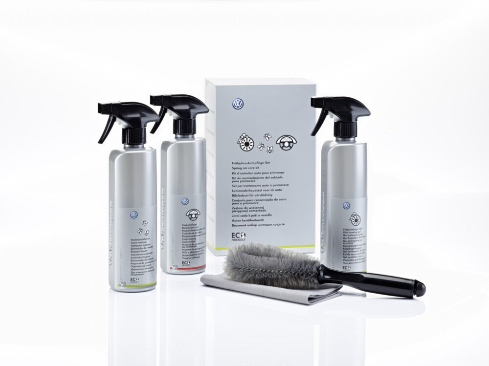 Limpieza de primavera para su Volkswagen: para limpiar su vehículo, existe un amplio programa de mantenimiento ajustado a cada estación del año y, por supuesto, con calidad Volkswagen comprobada. El set especial para primavera se compone de: