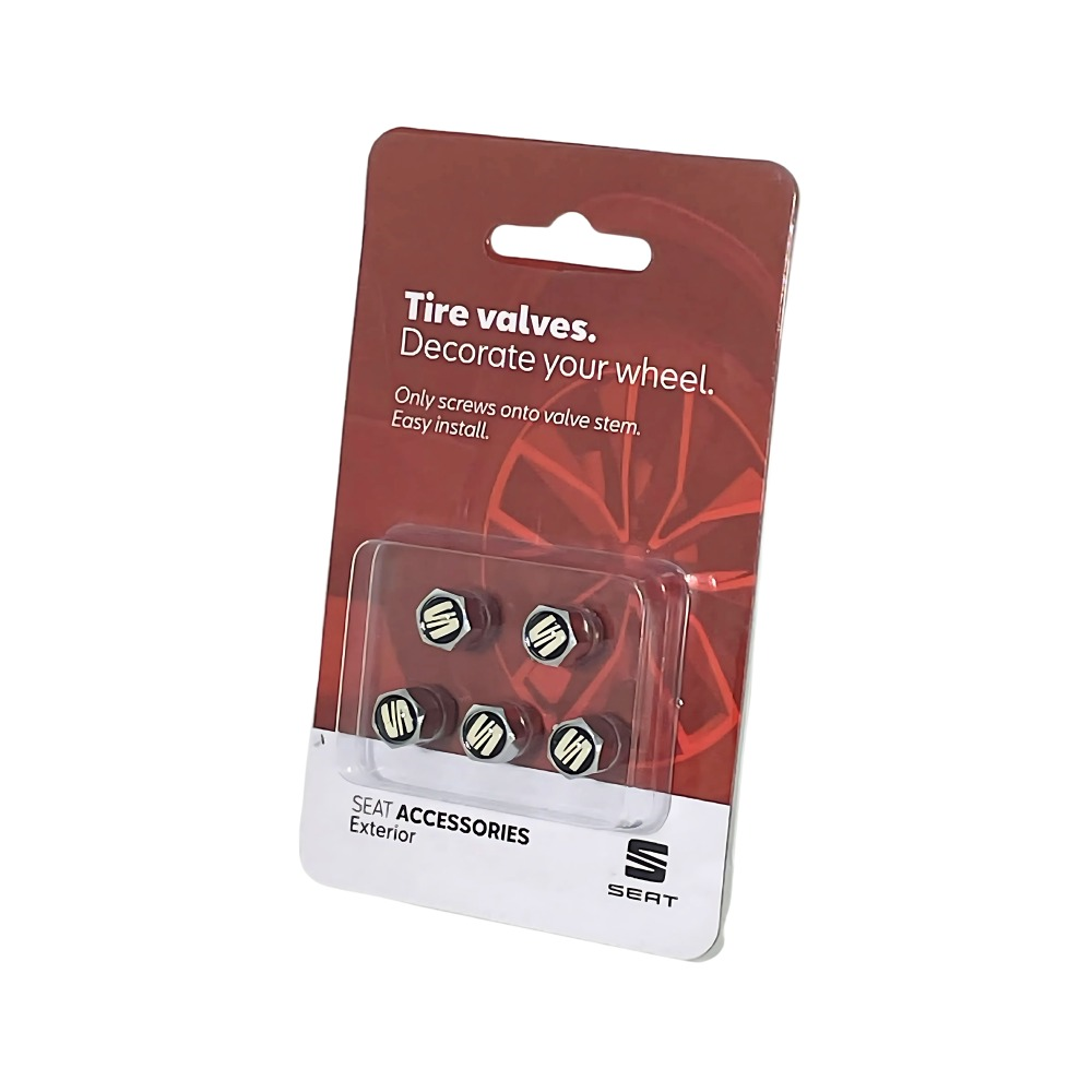 Tapón para Válvulas Original Seat – Set de 5, Aluminio y Logo SEAT
