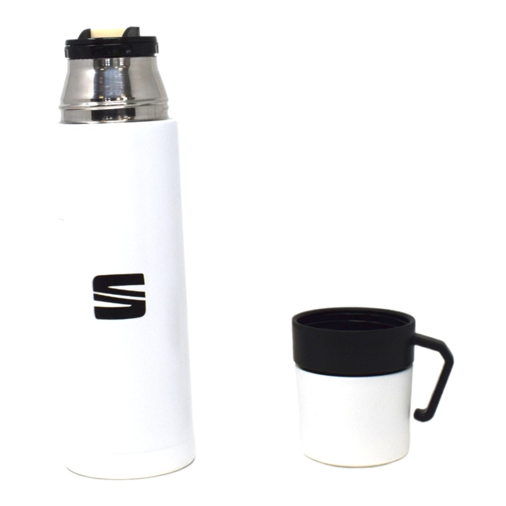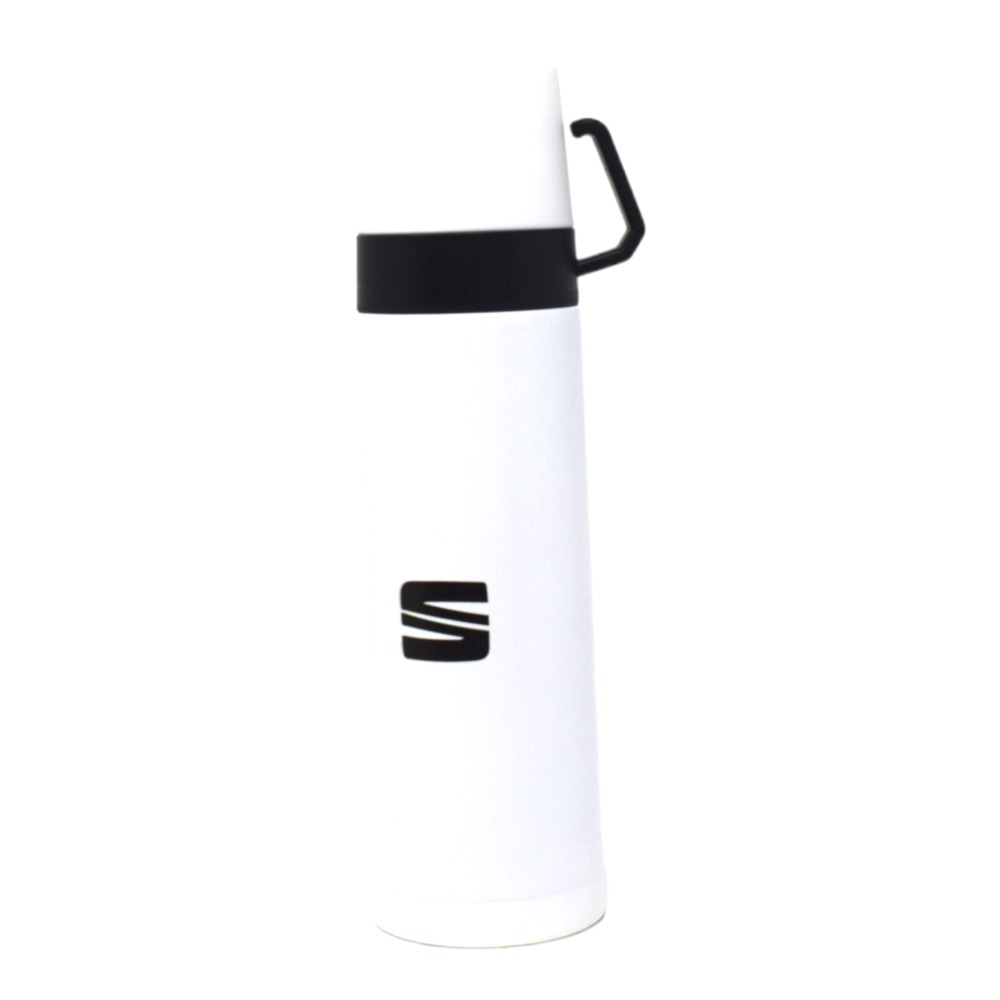 Prepárate para tus aventuras al aire libre con el Termo Original SEAT, tu fiel compañero en cada viaje. Fabricado con materiales de primera calidad, como el resistente acero inoxidable, y el distintivo logotipo de SEAT, este termo no solo te mantiene hidratado, sino que también hace una declaración de estilo.